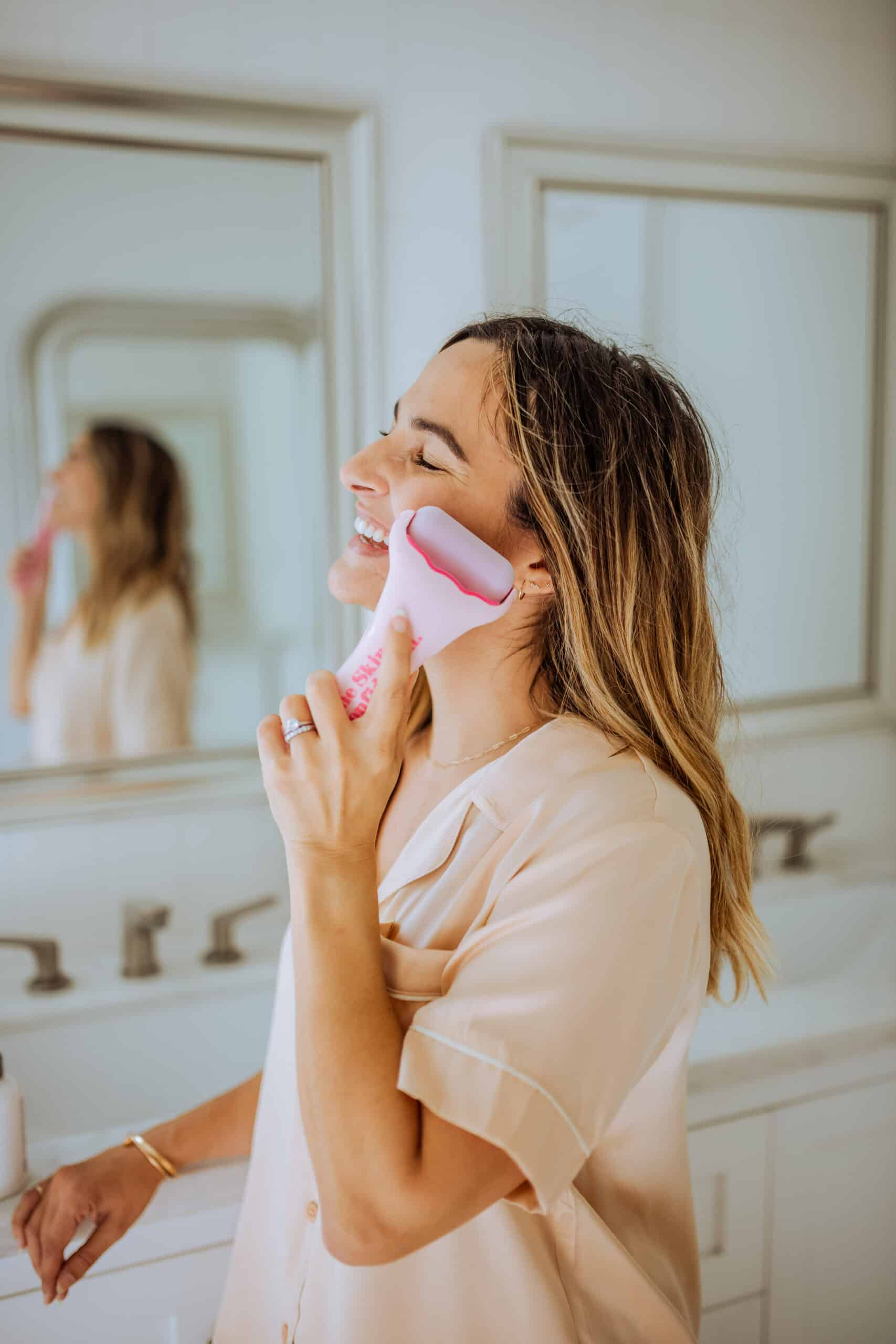 MY ICE ROLLER PICK: I am totally obsessed with my pink ice roller from The Skinny Confidential. It’s a great ice roller because it’s balanced and easy to hold, and it stays cooler than the other ice rollers I’ve tried.