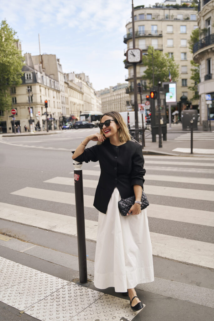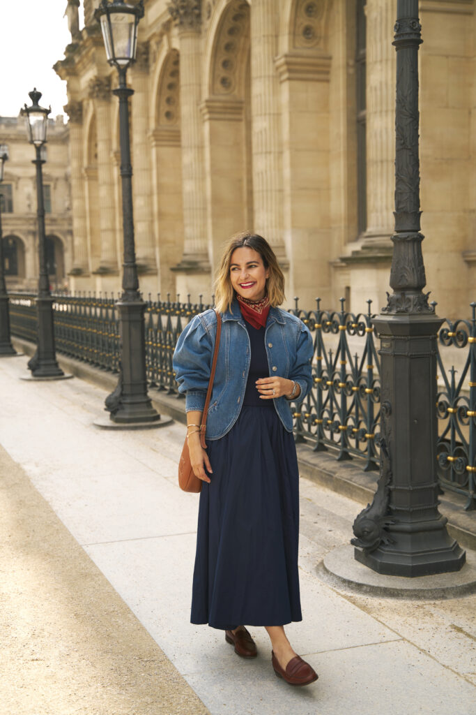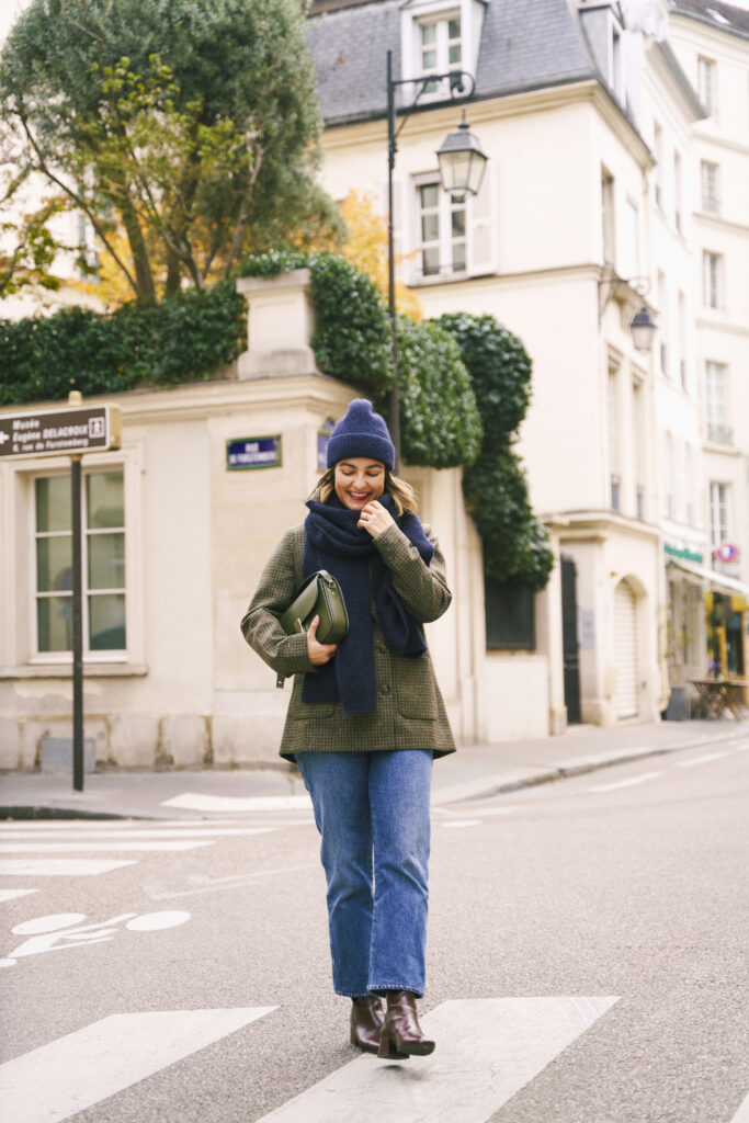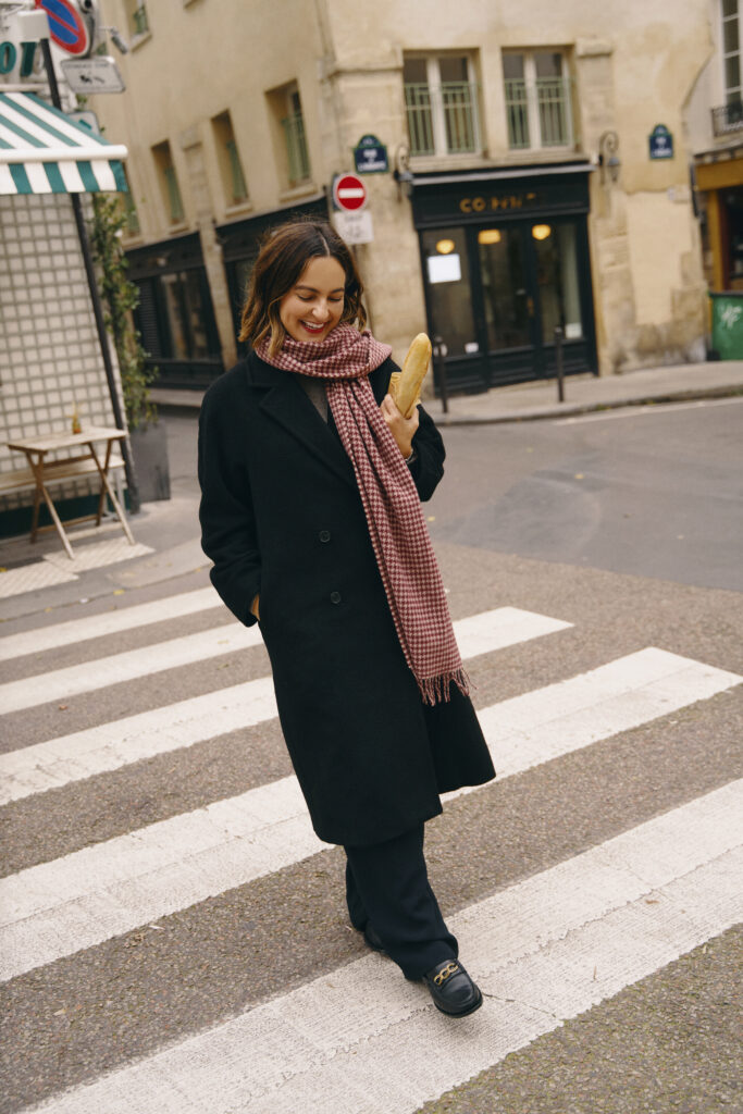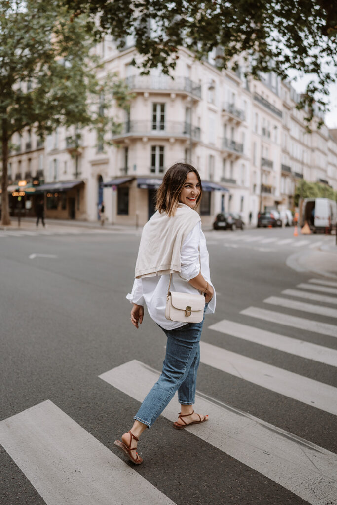If you’re looking for something a little less feminine than ballet flats, don’t sleep on loafers. Loafers are a great option when you’re looking for comfortable walking shoes that aren’t sneakers. I love loafers and have several pairs. Two of my most worn loafers are this pair (wearing above) and this pair, and they’re both from the French brand Sezane. I wear my loafers with black pants, jeans, and even skirts on warmer days. During colder months when it’s not quite boot season, add a pair of crew socks to your look to keep your ankles and feet warm while walking the streets of Paris.