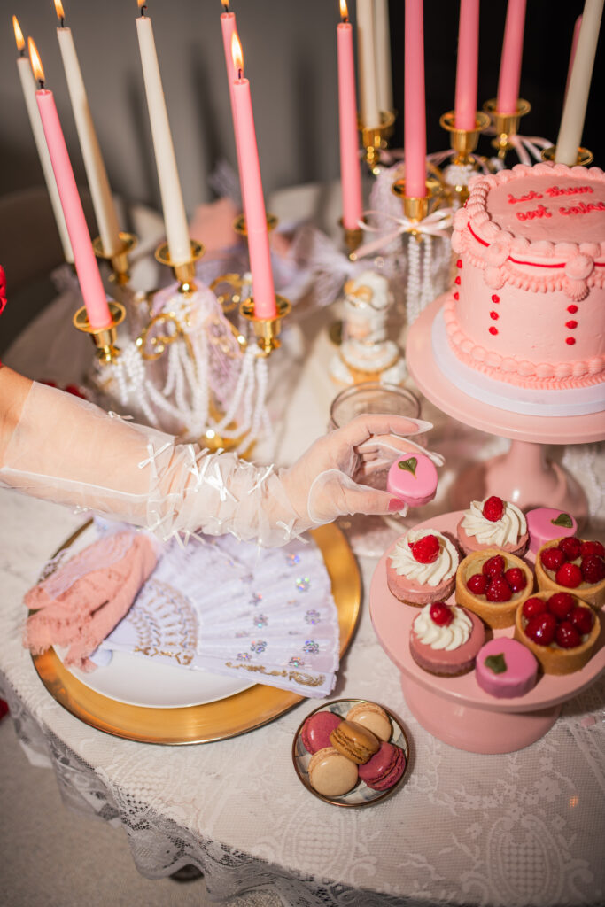 One of the best parts of this theme? The fashion! This is your moment to step into all things French rococo; fluffy skirts, pearls, ruffles, and lace details. Whether you go all out or have a more subtle nod to the era, dressing the part will complete the experience.