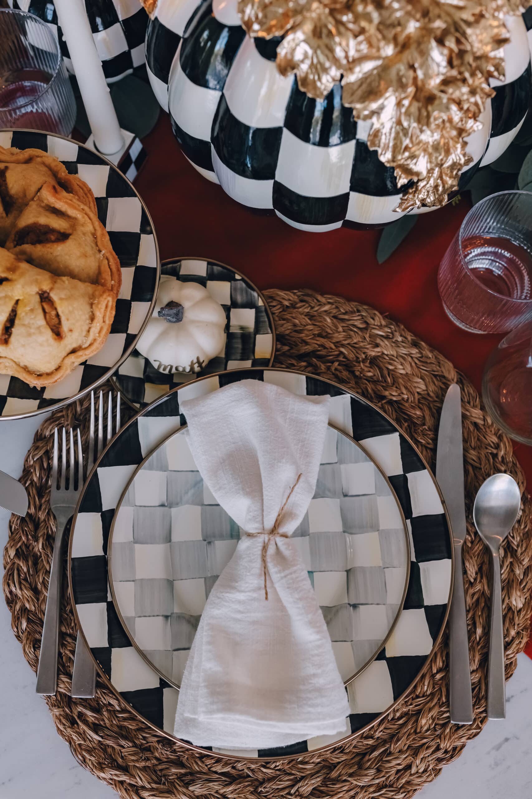 My favorite everyday plates that still feel fancy are these white plates from Crate & Barrel. You can also find my gray checkered plates here and my black checkered plates here.