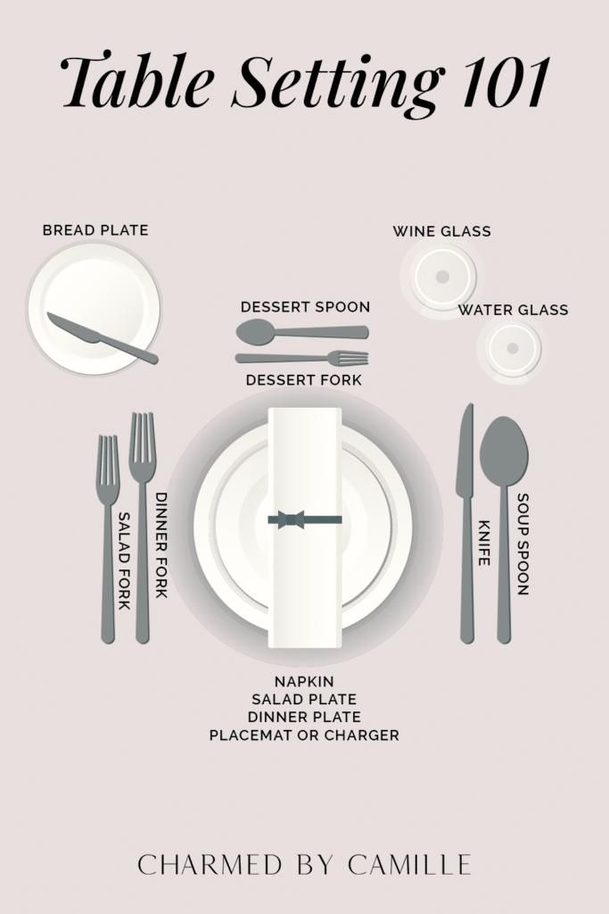 Once you’ve got your table centerpiece done, it’s time to set the table! Here’s exactly what to do with all those plates, forks, and glasses: