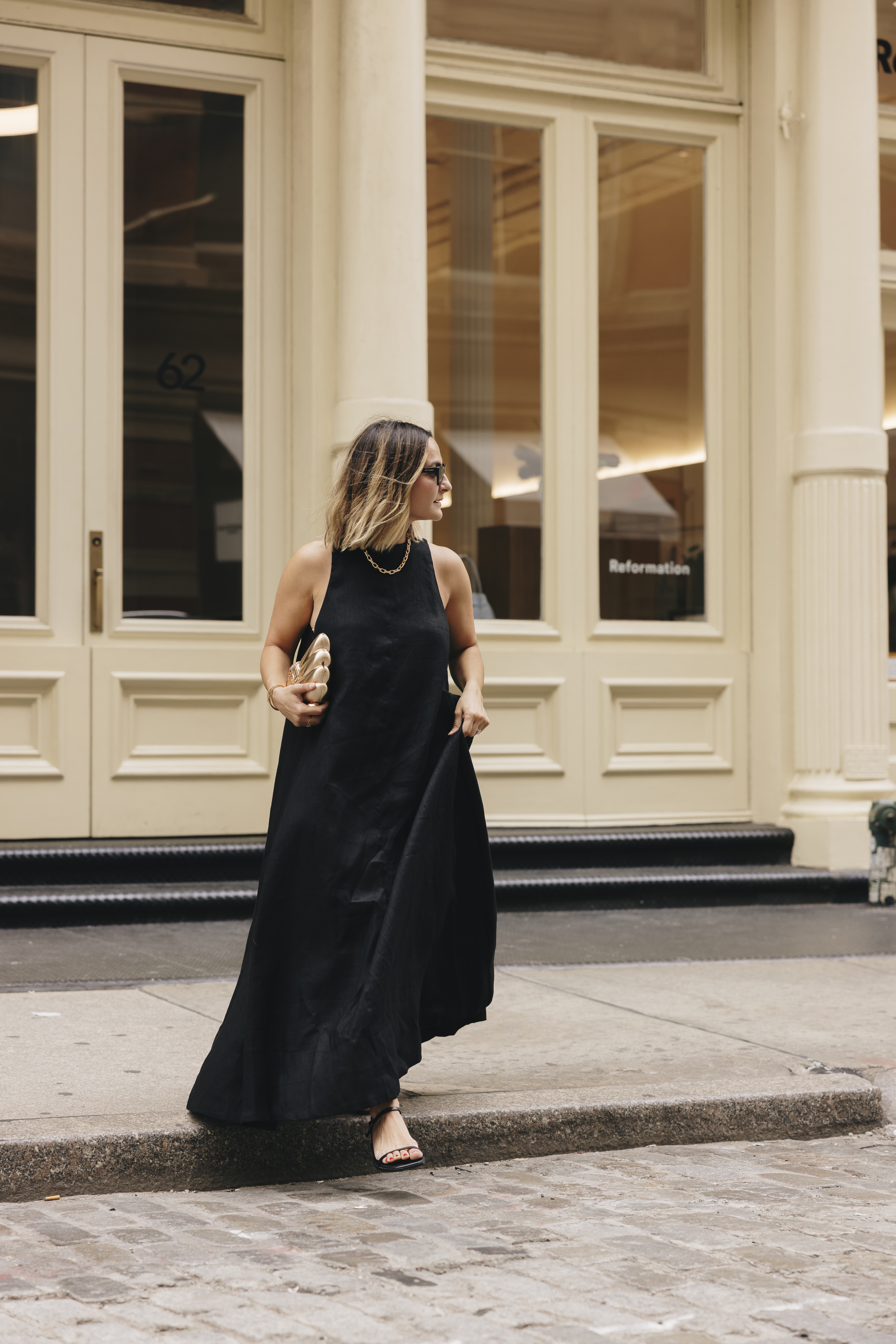 Whether you’re reaching for an easy breezy maxi or a little black sundress, there are so many ways to make this classic color work for warm-weather days. If you’re struggling to style your black dress in summer without feeling like you’re melting, here are my easy tips on how to wear a black dress in summer.