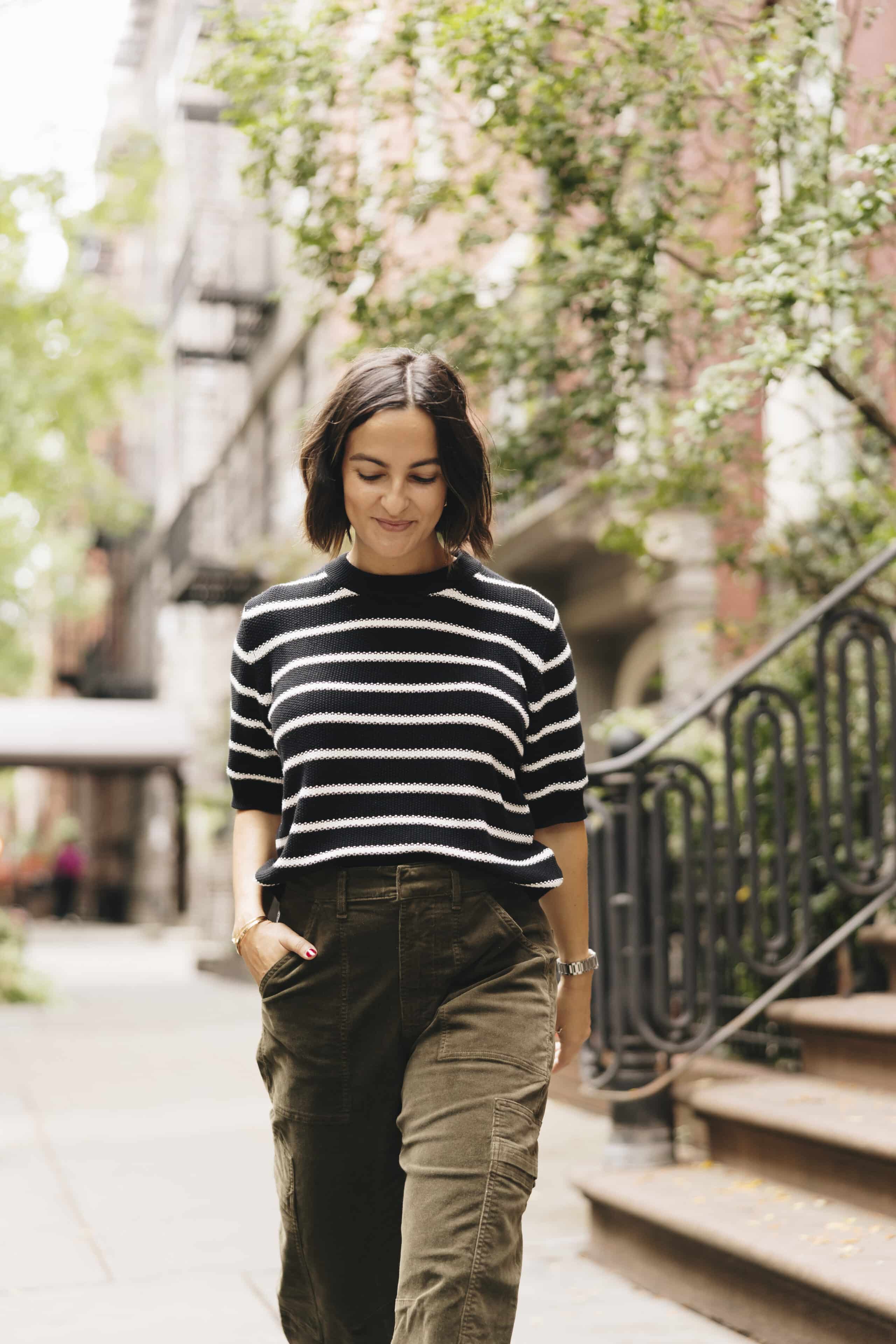 Every closet needs a few great, elevated sweaters. Consider looking for luxurious fabrics like cashmere or high-quality cotton, as well as sweaters that have special details like texture, stripes (a ladylike classic!), buttons, and puff sleeves. I love the ribbed texture of this cardigan and the large flat buttons.