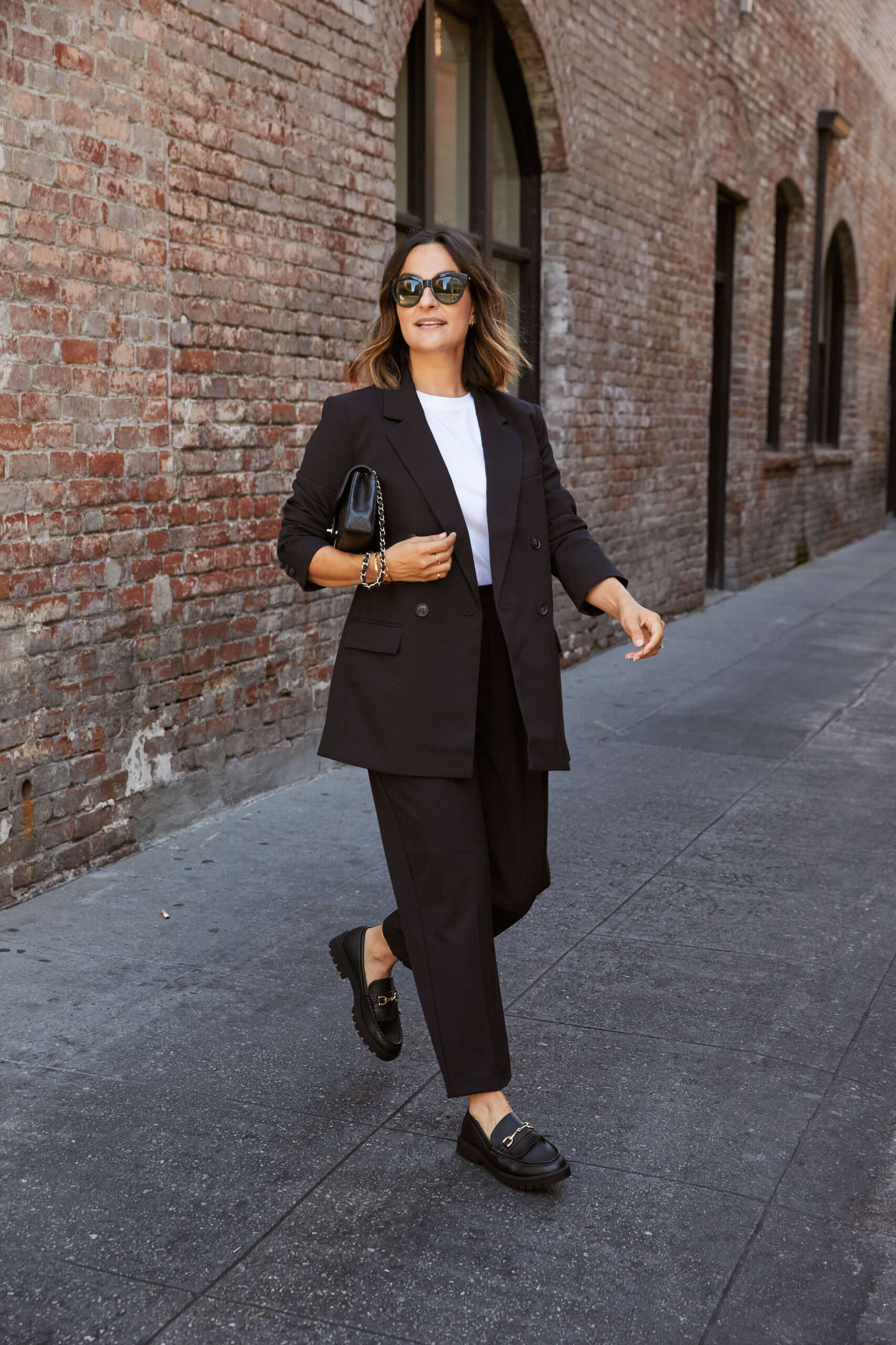 For a fail-proof outfit when you’re running late, you can’t go wrong with loafers and a matching set. Pair drapey trousers with a matching blazer for a chic, modern look that also works for the office or the weekend.